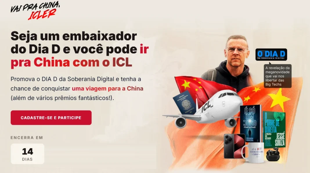Logo depois do filme, entrou no ar um programa de indicações que passa a organizar o público em torno do Dia D da Soberania Digital, marcado para 28 de abril. E que, na prática, abre uma disputa com um prêmio que chamou atenção de quem acompanhava ao vivo: uma viagem para a China.